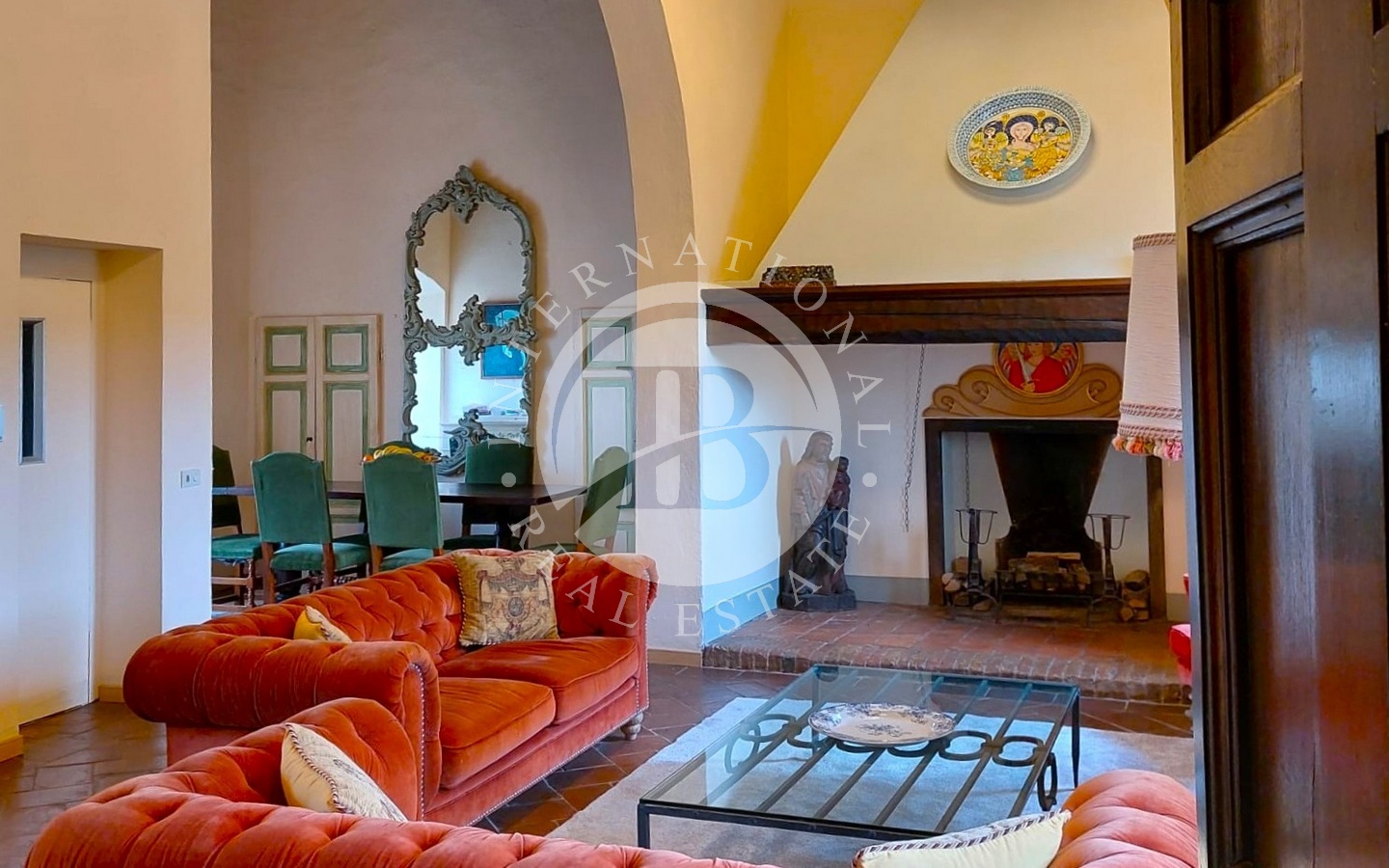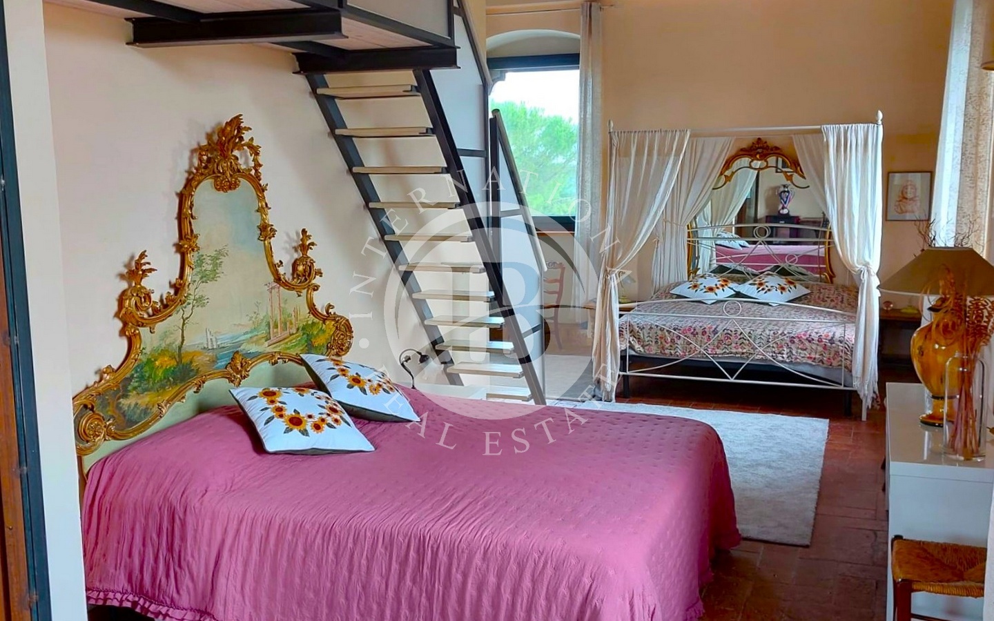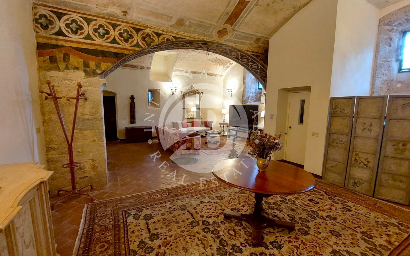 Gli interni, recentemente ristrutturati, conservano dettagli originali che raccontano la storia della casa: saloni affrescati, camini d’epoca e ambienti dal carattere raffinato. Gli spazi abitativi comprendono fino a cinque camere da letto e cinque bagni, una luminosa zona living perfetta per la convivialità, un’area dedicata a lavanderia e una grande cantina in pietra dal fascino intramontabile.