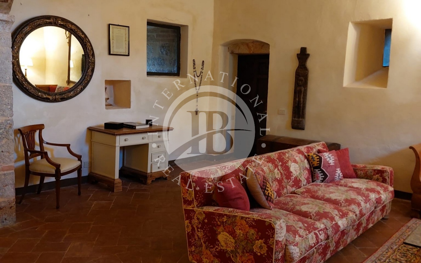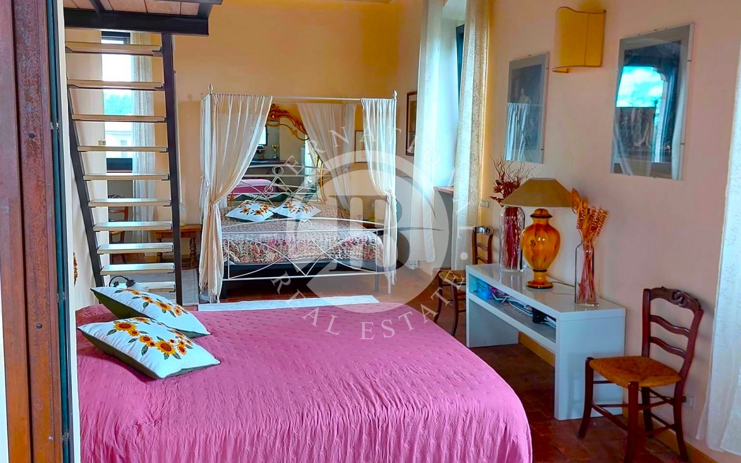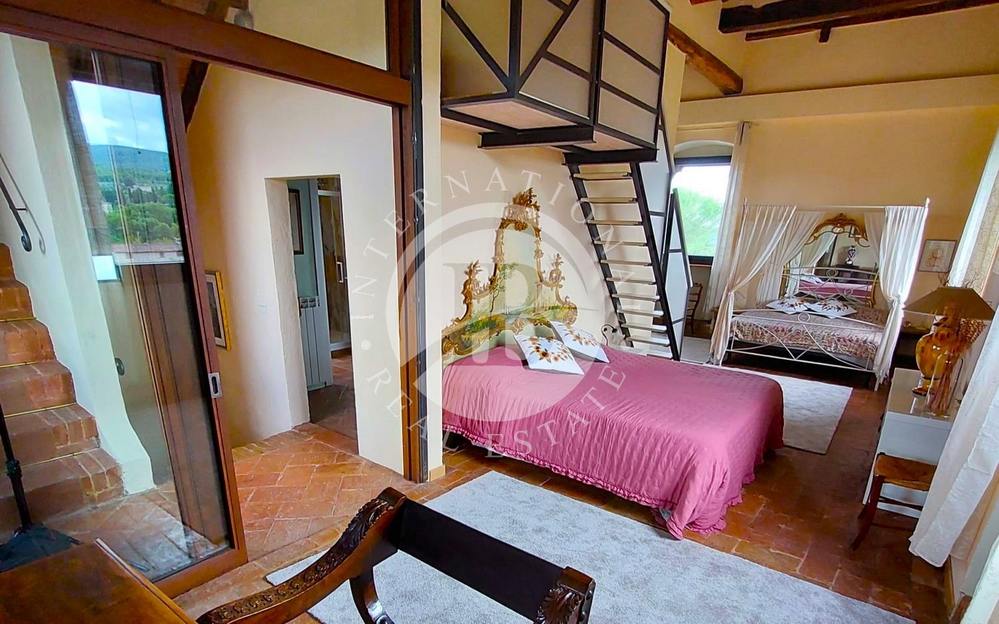 Gli interni, recentemente ristrutturati, conservano dettagli originali che raccontano la storia della casa: saloni affrescati, camini d’epoca e ambienti dal carattere raffinato. Gli spazi abitativi comprendono fino a cinque camere da letto e cinque bagni, una luminosa zona living perfetta per la convivialità, un’area dedicata a lavanderia e una grande cantina in pietra dal fascino intramontabile.