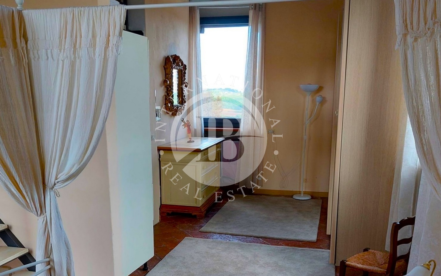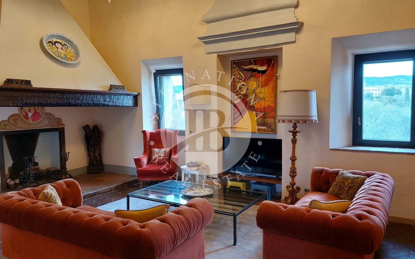 All’esterno, la terrazza panoramica regala scorci suggestivi sul paesaggio toscano, mentre il piccolo giardino privato invita a momenti di relax in totale riservatezza. La proprietà dispone inoltre di numerosi posti auto riservati, un valore aggiunto che la rende ancora più comoda e completa.