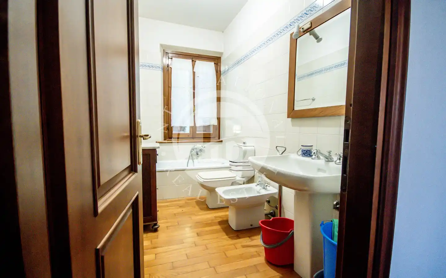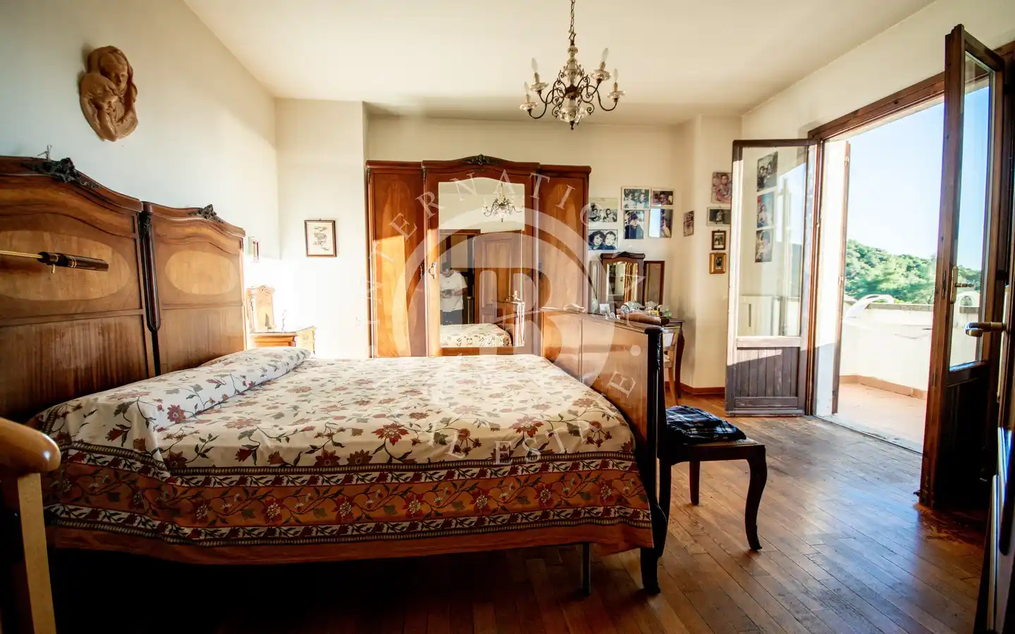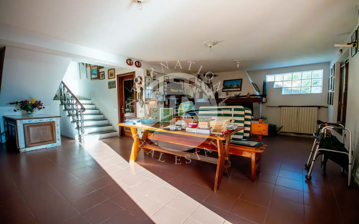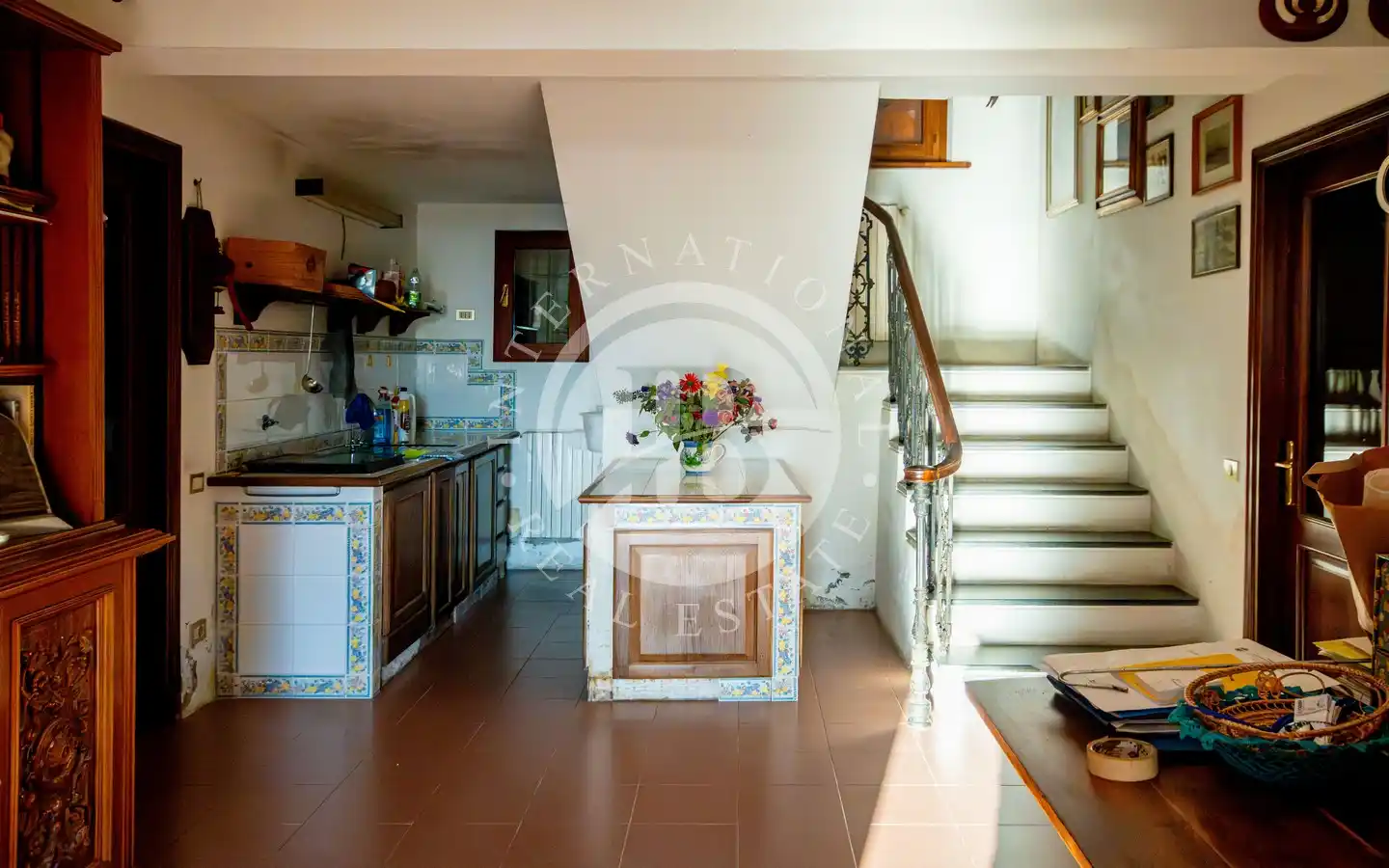 Al piano terra si trovano un salone di rappresentanza con accesso diretto a una terrazza di 30 mq con vista mare, una cucina abitabile con terrazza di 25 mq, uno studio, disimpegno e bagno. Il piano primo ospita quattro camere matrimoniali e due bagni, mentre il piano sottotetto comprende tre vani con bagno, attualmente organizzati in due camere e uno studio con vista panoramica.