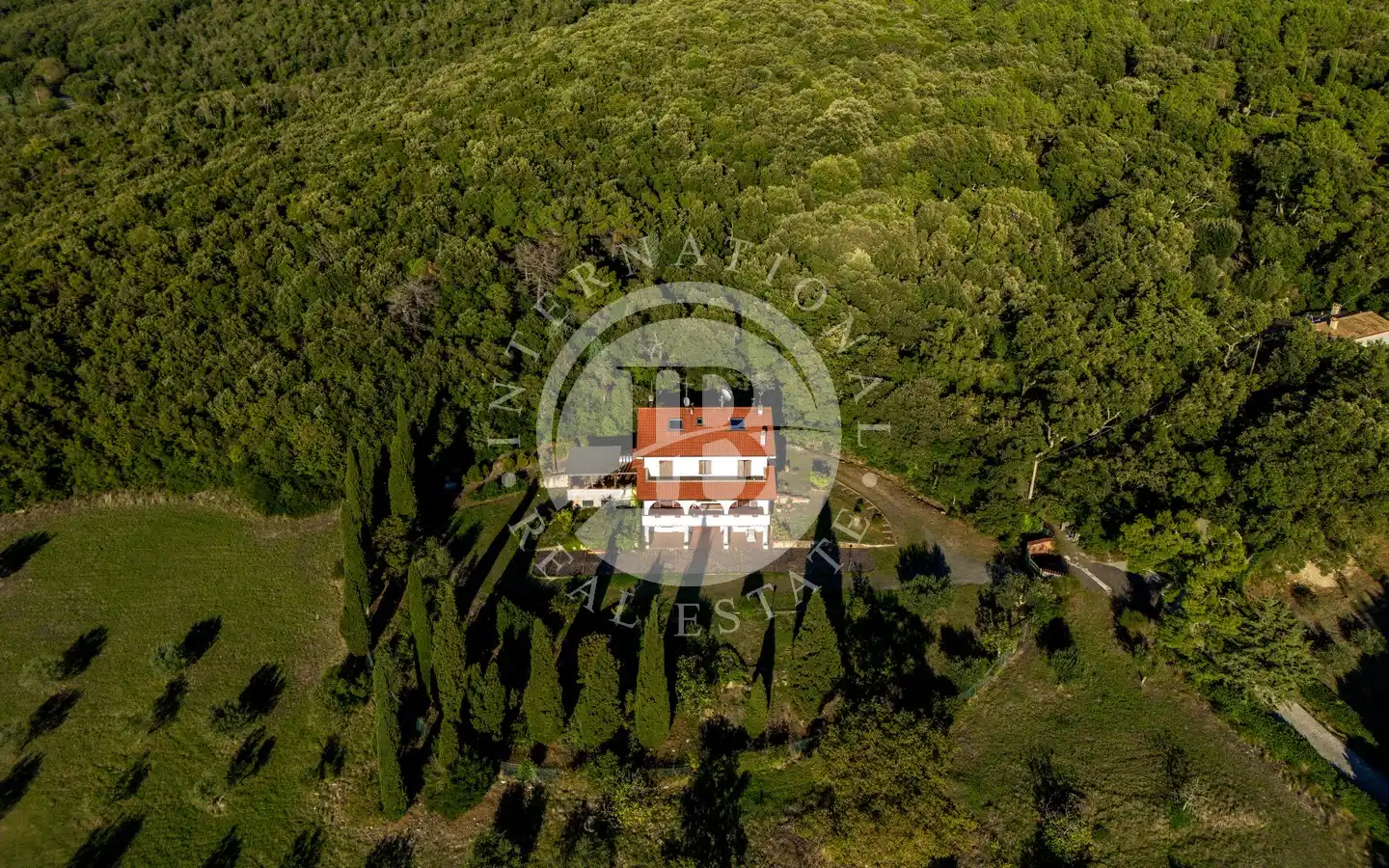 Read moreProponiamo in vendita una proprietà di pregio situata nel comune di Riparbella (PI), collocata sulla prima collina con affaccio panoramico sulla Costa degli Etruschi e a breve distanza dalle principali località balneari della zona. La dimora, immersa in 1,5 ettari di terreno, si sviluppa su una superficie complessiva di circa 370 mq distribuiti su tre livelli e si caratterizza per un’architettura che mantiene il fascino autentico toscano, con ampi spazi luminosi e affacci panoramici sia sulla campagna circostante sia sul mare.