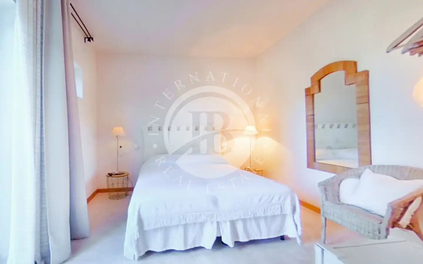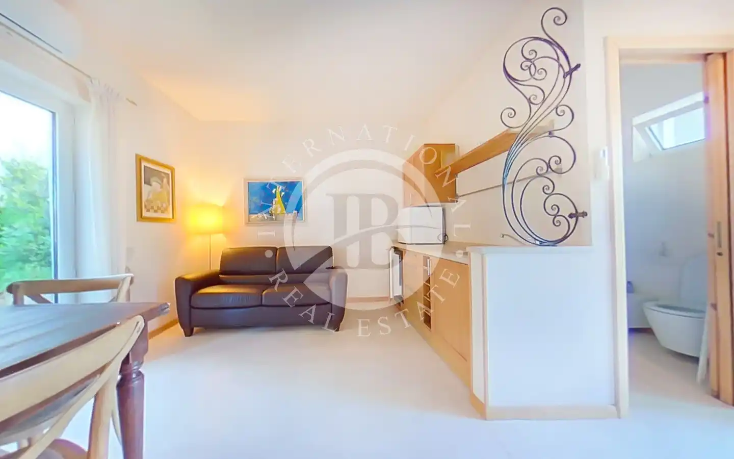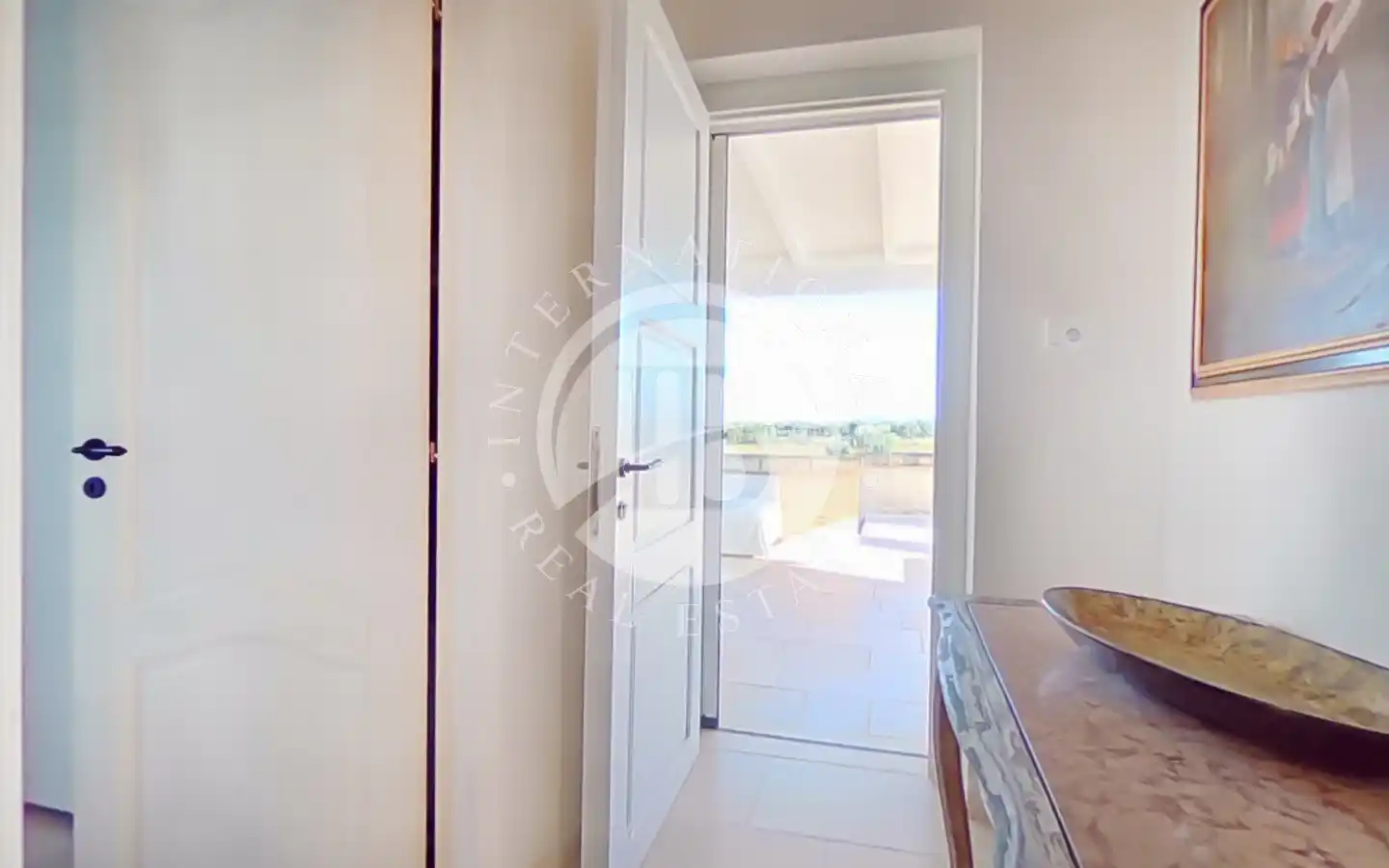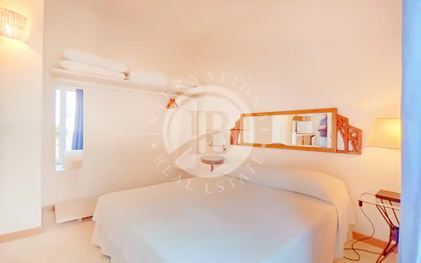 Il piano terra accoglie con un luminoso living dotato di camino e doppio accesso al rigoglioso giardino, una zona pranzo riservata e una cucina dal design essenziale ma funzionale. Due camere da letto con bagno privato completano questo livello, creando un ambiente intimo e raffinato. Attraverso una scala interna collegata al soggiorno, oppure tramite accesso esterno, si raggiunge il piano superiore, che ospita altre due camere da letto, entrambe con bagno en suite e spogliatoio. Da qui si apre una terrazza panoramica con vista mare, attrezzata con cucina esterna e un’ampia area living ideale per vivere appieno la dimensione mediterranea degli spazi all’aperto.
