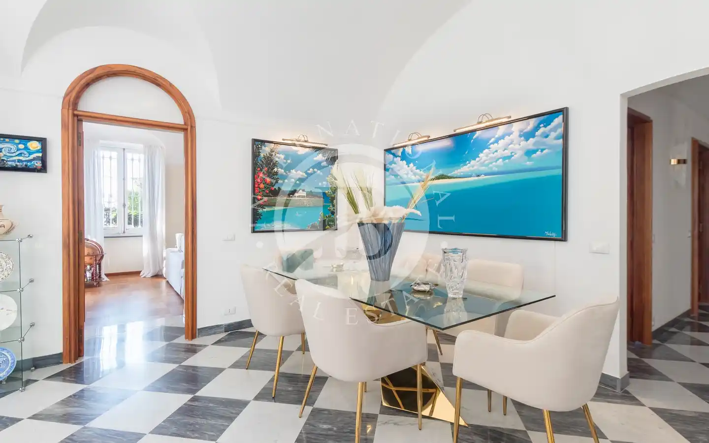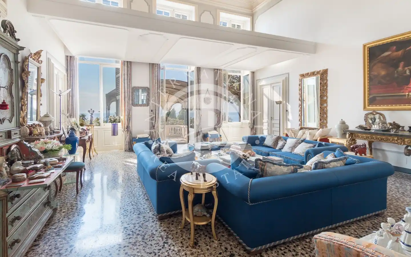 Le abitazioni, entrambe disposte su due livelli, offrono ambienti raffinati, ricchi di dettagli architettonici originali e materiali di pregio. L’abitazione principale accoglie al piano superiore un maestoso salone affrescato con vista mare aperto su una splendida terrazza panoramica, due camere da letto, due bagni e al piano inferiore un’ampia zona living, sala da pranzo grande cucina e altri due bagni, un locale tecnico, uno spazioso ripostiglio oltre a un importante ingresso porticato. L’altra unità più piccola presenta eleganti pavimenti in marmo policromo, una luminosa zona giorno con cucina, soggiorno, sala da pranzo e un bagno al piano terra, mentre al piano superiore trovano spazio due camere, di cui una con bagno en-suite e cabina armadi, un salotto, un ripostiglio e un secondo bagno. Entrambe le proprietà dispongono di accessi indipendenti, garantendo massima privacy ad ognuna e comodità.