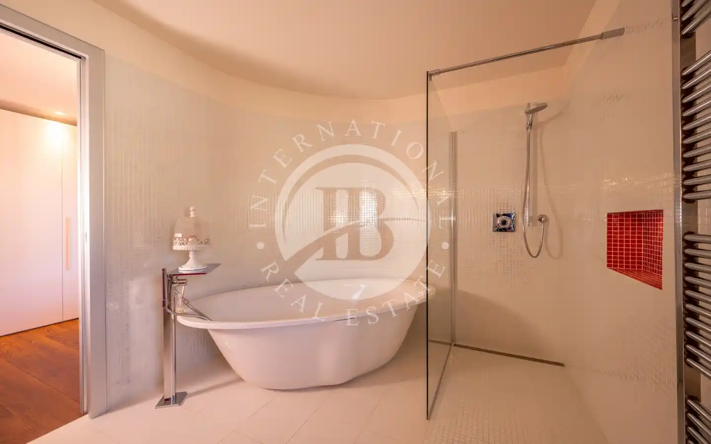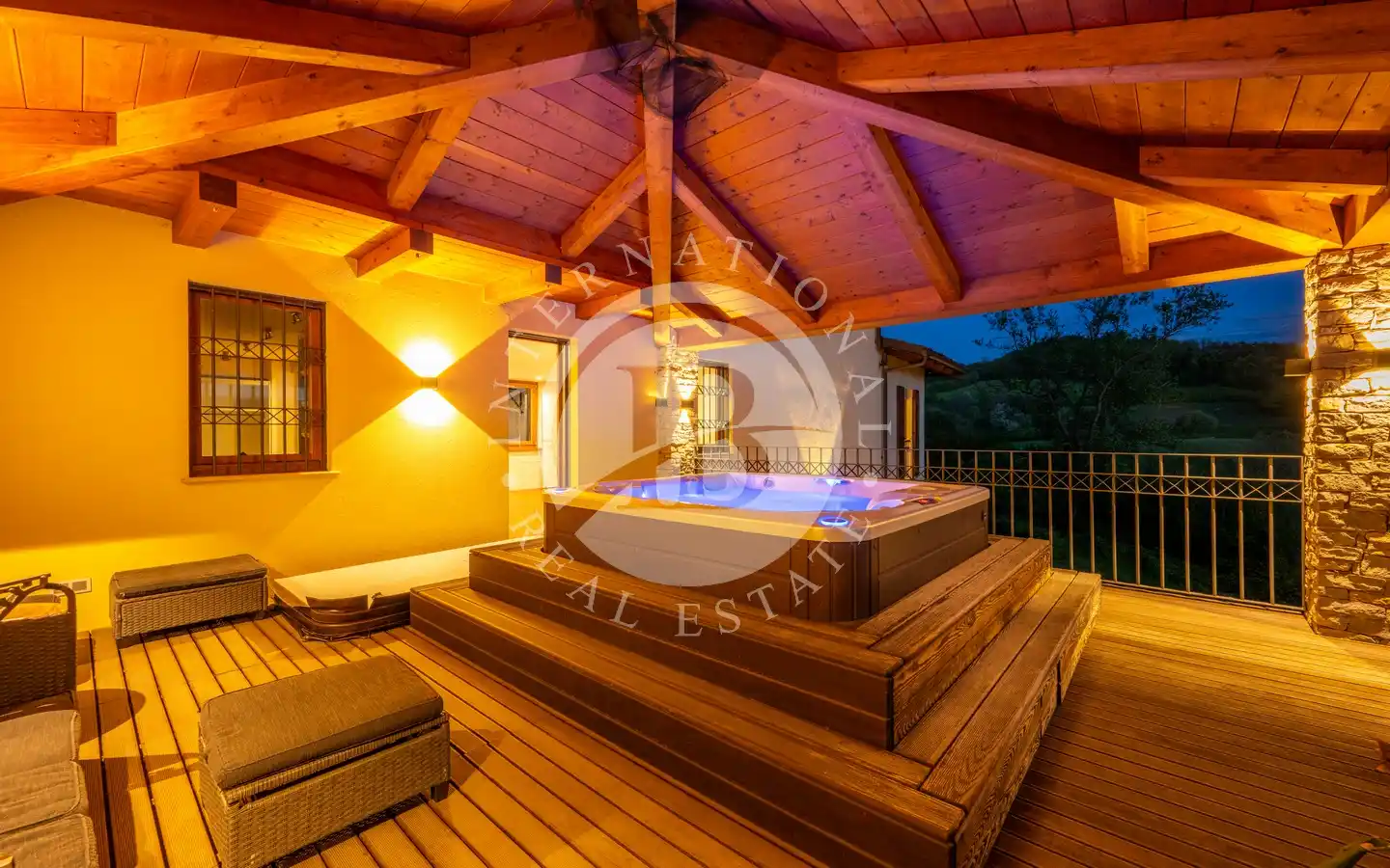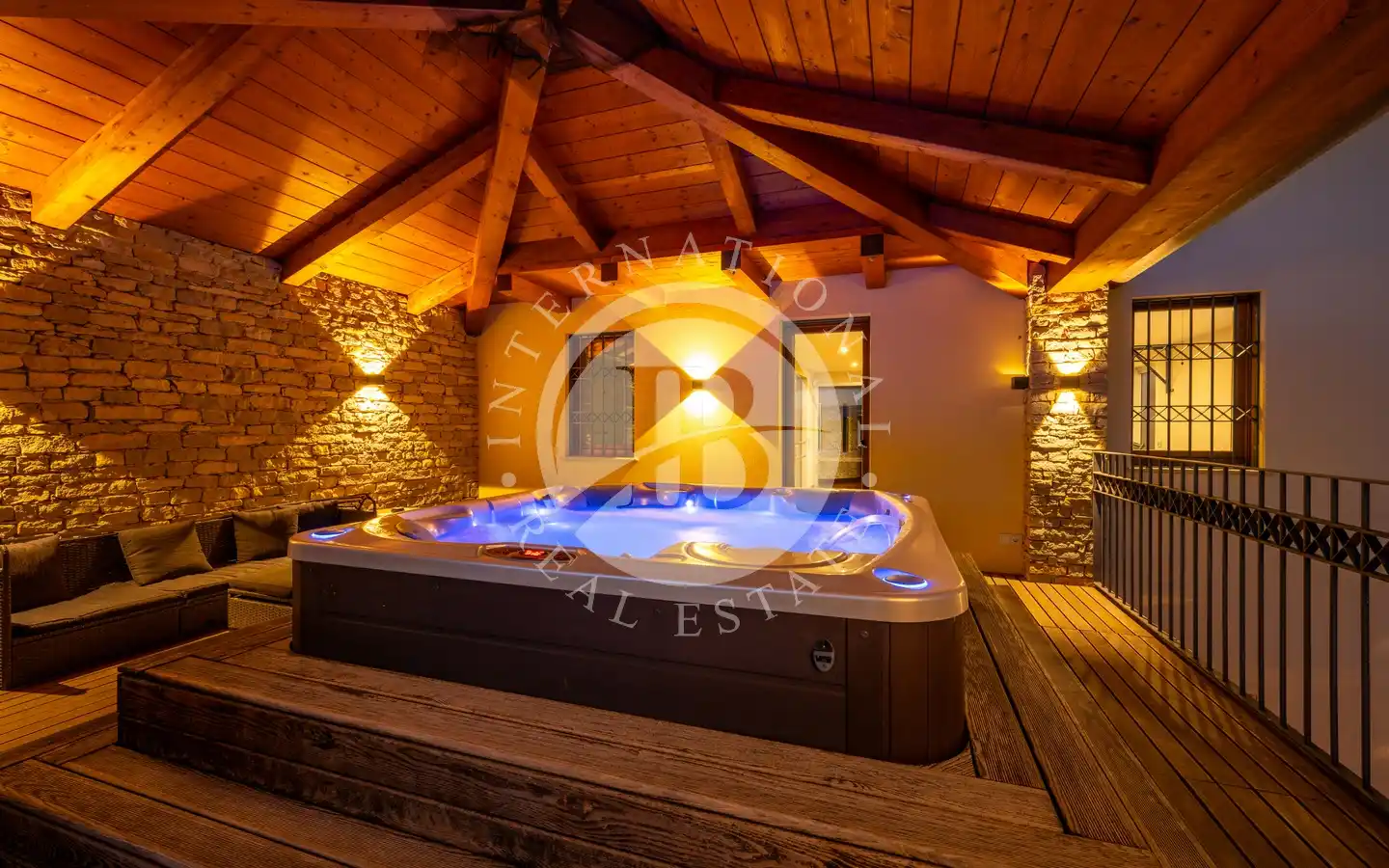 Il giardino privato, arricchito da terrazze panoramiche e una Jacuzzi esterna, incornicia la dimora rendendola un luogo ideale per vivere momenti di quiete o ospitare con stile. Impianti di ultima generazione, riscaldamento a pavimento e climatizzazione garantiscono il massimo comfort in ogni stagione.