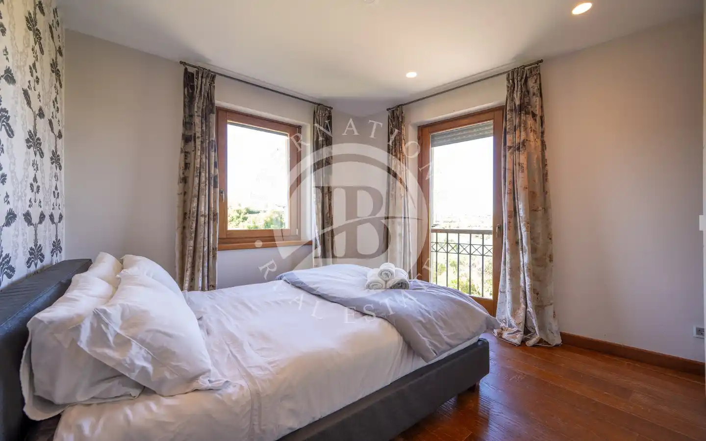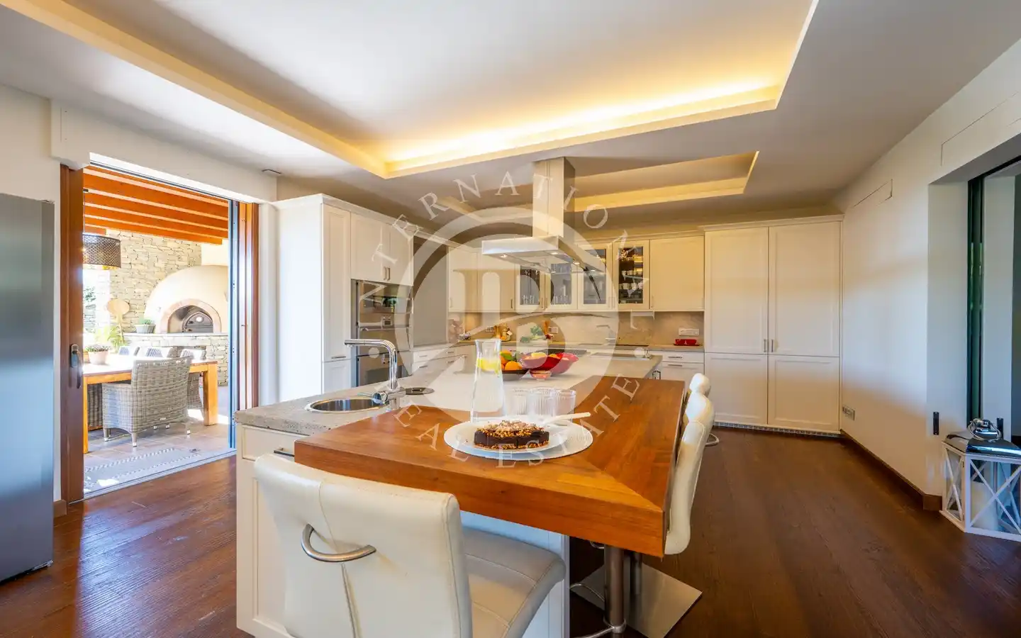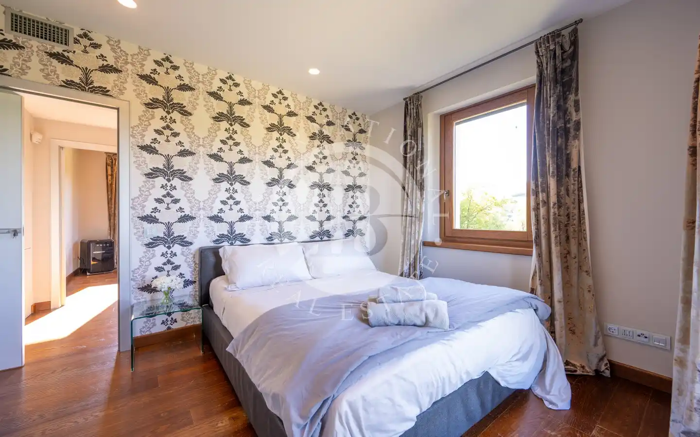 Il giardino privato, arricchito da terrazze panoramiche e una Jacuzzi esterna, incornicia la dimora rendendola un luogo ideale per vivere momenti di quiete o ospitare con stile. Impianti di ultima generazione, riscaldamento a pavimento e climatizzazione garantiscono il massimo comfort in ogni stagione.