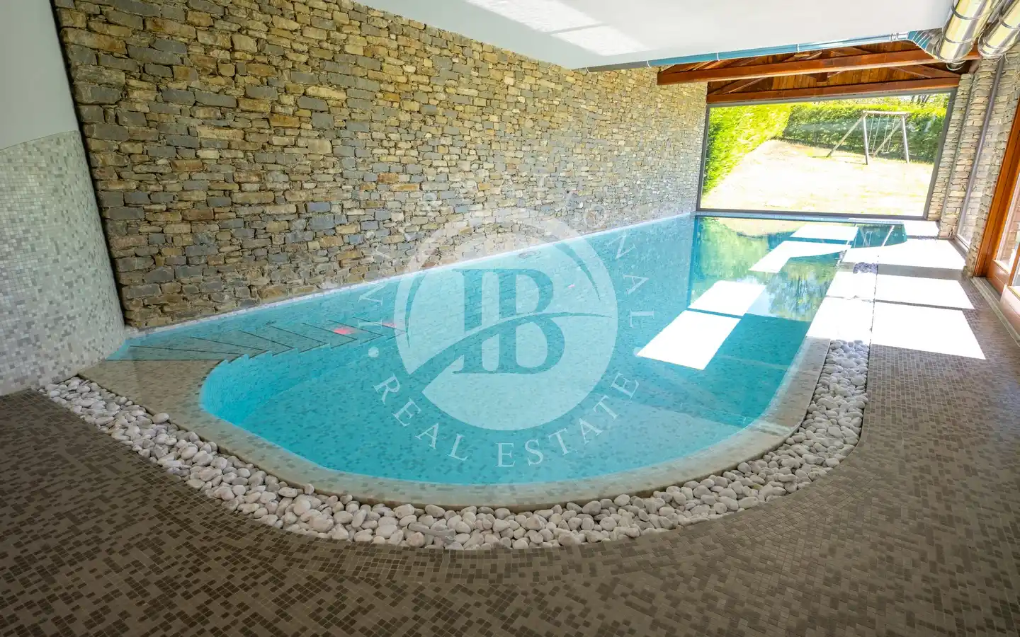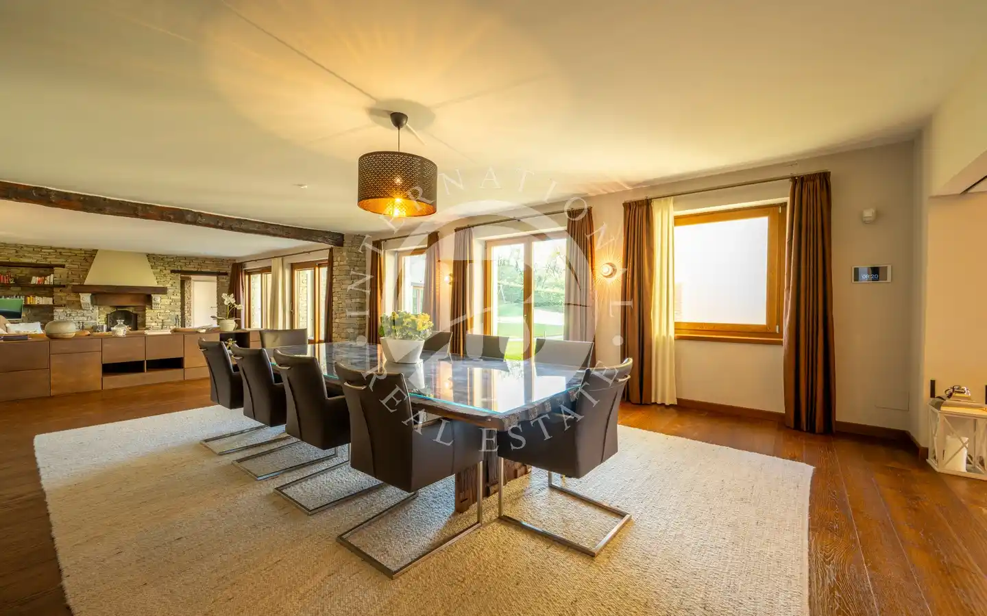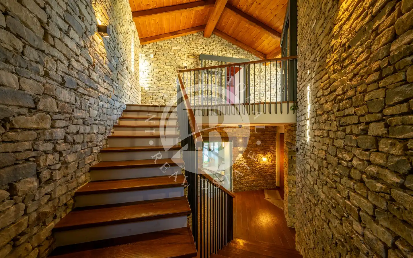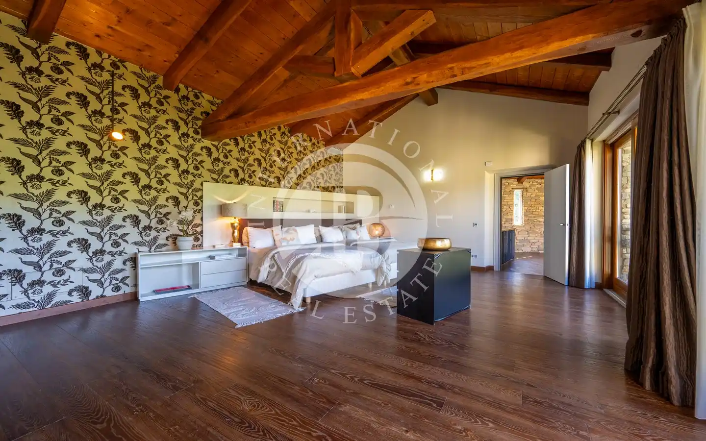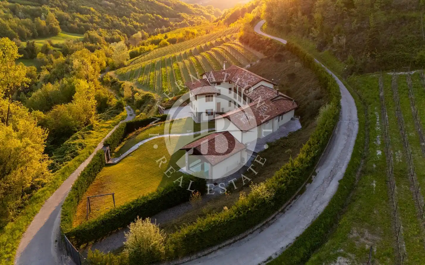 La residenza, di circa 1.000 mq distribuiti su quattro livelli collegati da ascensore, si inserisce in un contesto riservato di oltre sei ettari, tra boschi e filari di Chardonnay e Pinot Nero. Gli ambienti interni, caratterizzati da materiali autentici come pietra locale, cotto e legno, sono stati pensati per offrire al tempo stesso calore ed esclusività. Accanto alle ampie zone giorno e al salone di rappresentanza trovano spazio una piscina coperta riscaldata, un’area wellness con hammam e palestra, una sala biliardo e una sala cinema, oltre a unità indipendenti per ospiti e una grande autorimessa.