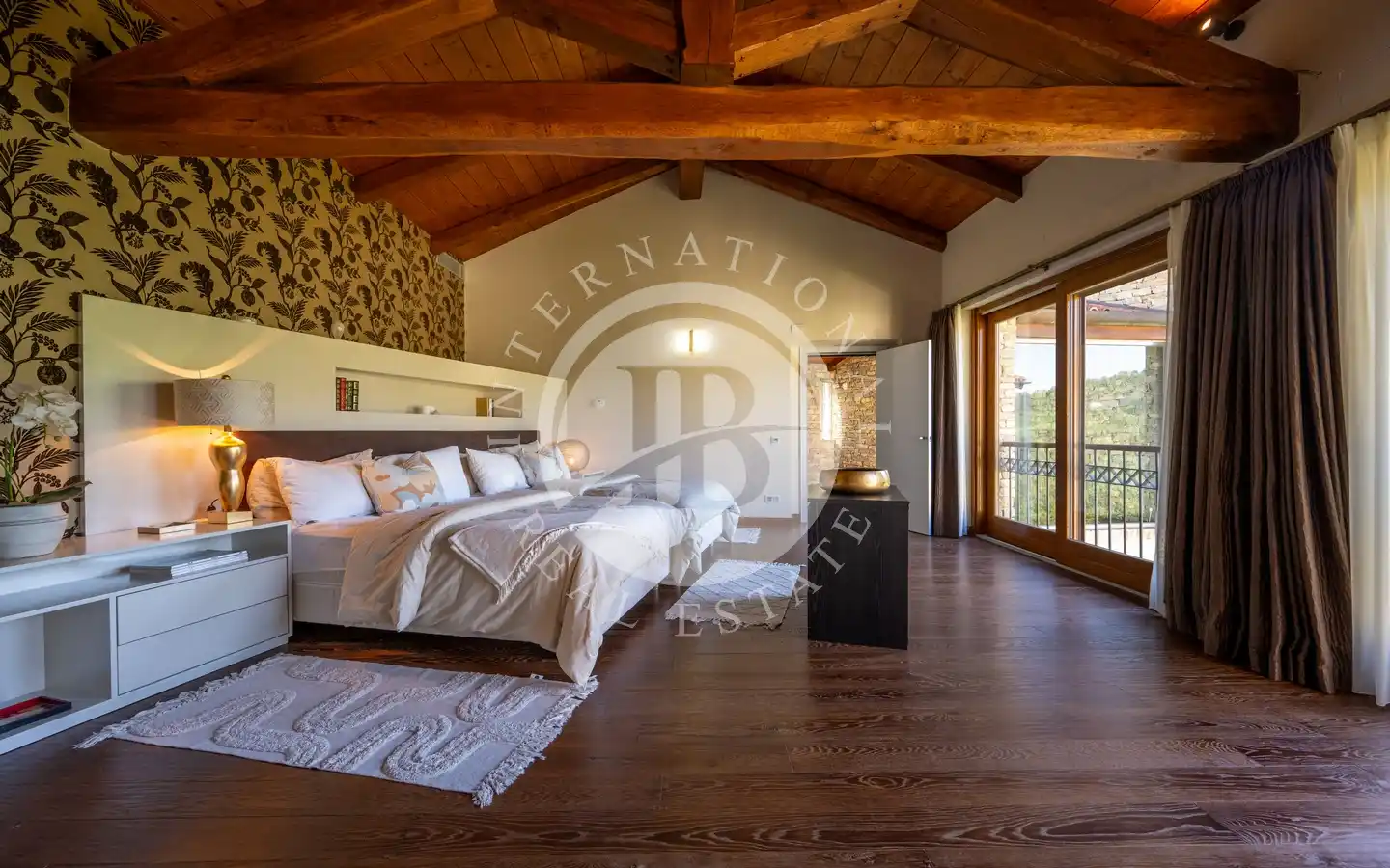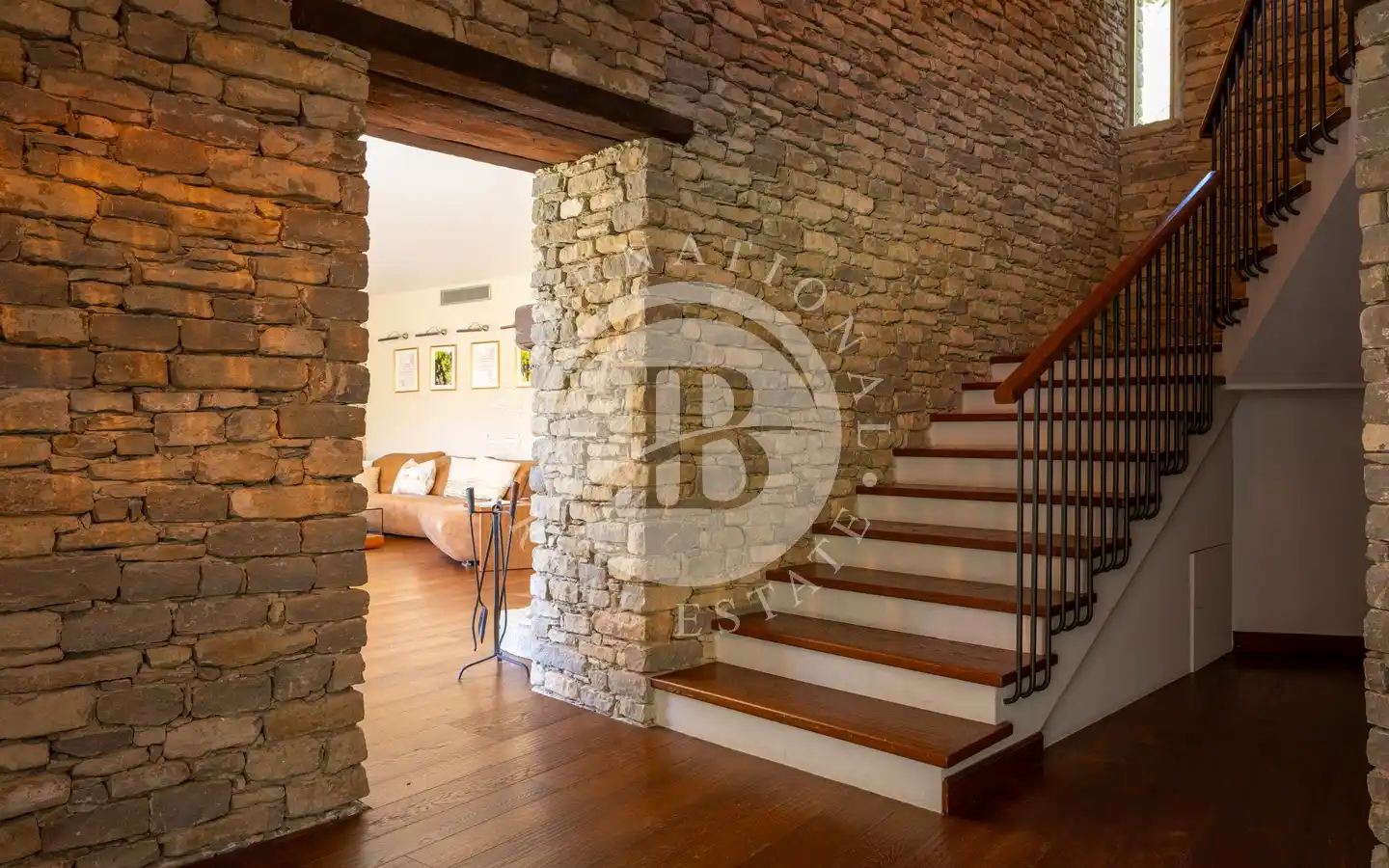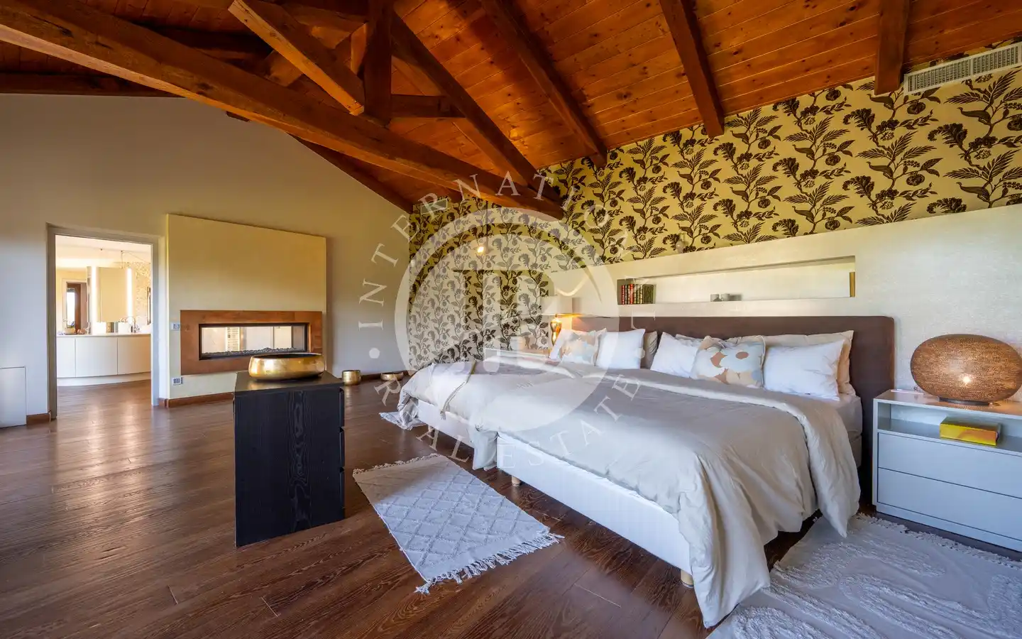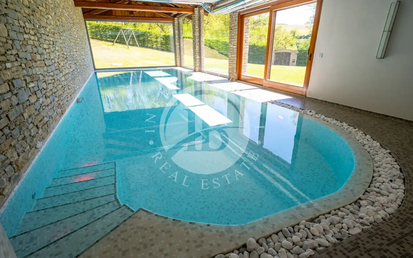 La residenza, di circa 1.000 mq distribuiti su quattro livelli collegati da ascensore, si inserisce in un contesto riservato di oltre sei ettari, tra boschi e filari di Chardonnay e Pinot Nero. Gli ambienti interni, caratterizzati da materiali autentici come pietra locale, cotto e legno, sono stati pensati per offrire al tempo stesso calore ed esclusività. Accanto alle ampie zone giorno e al salone di rappresentanza trovano spazio una piscina coperta riscaldata, un’area wellness con hammam e palestra, una sala biliardo e una sala cinema, oltre a unità indipendenti per ospiti e una grande autorimessa.