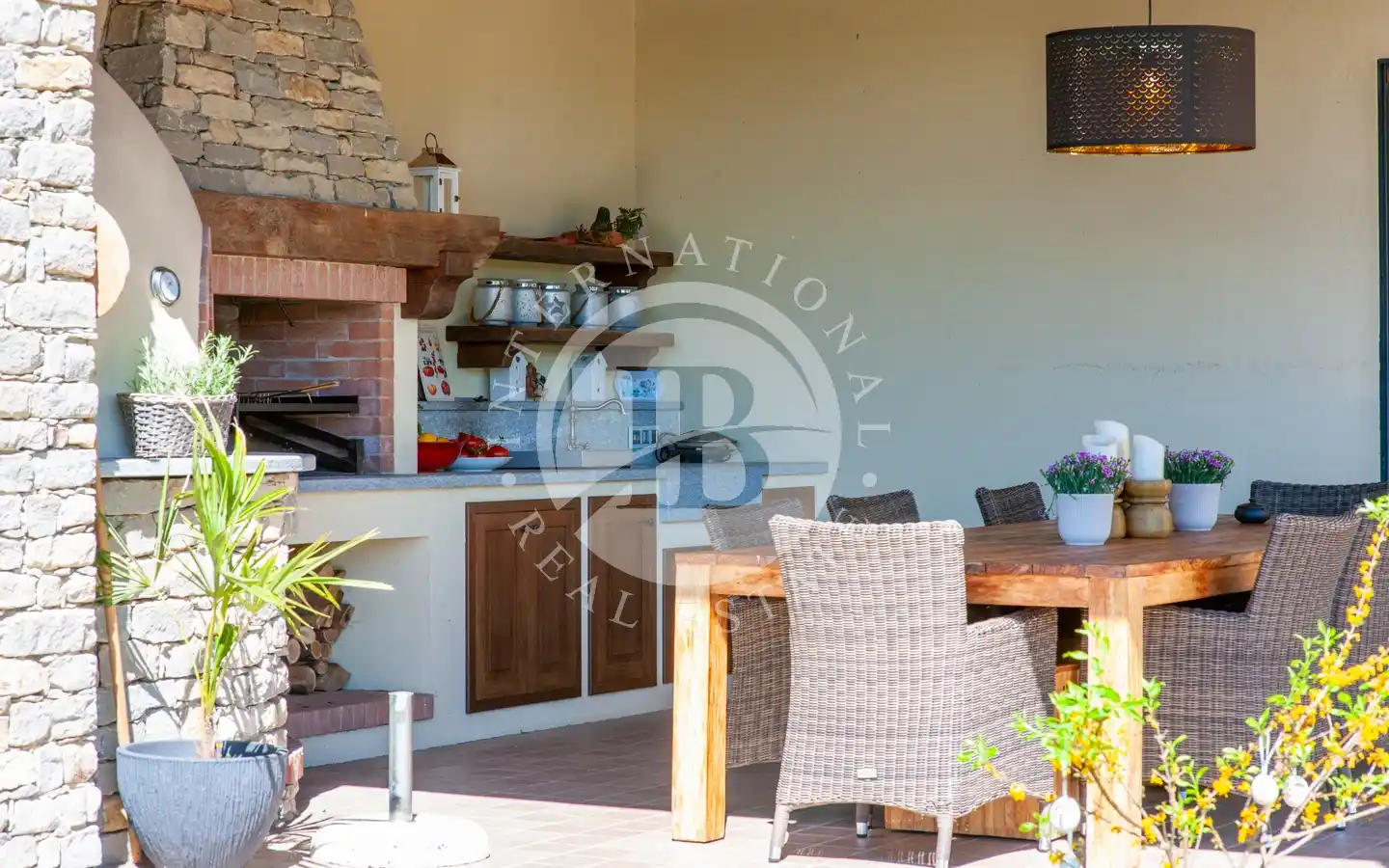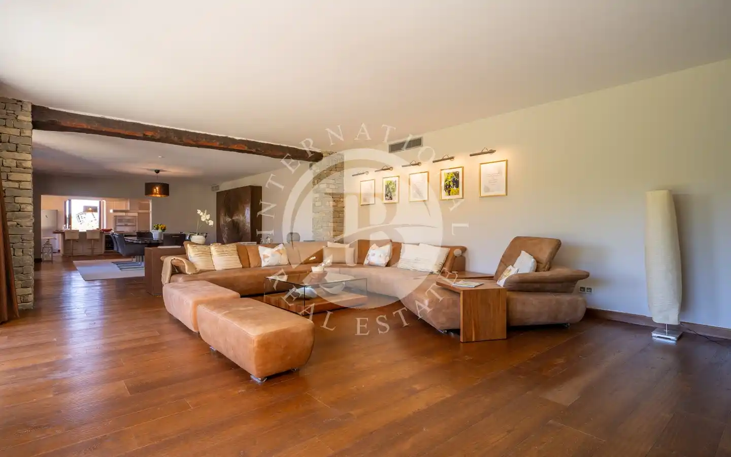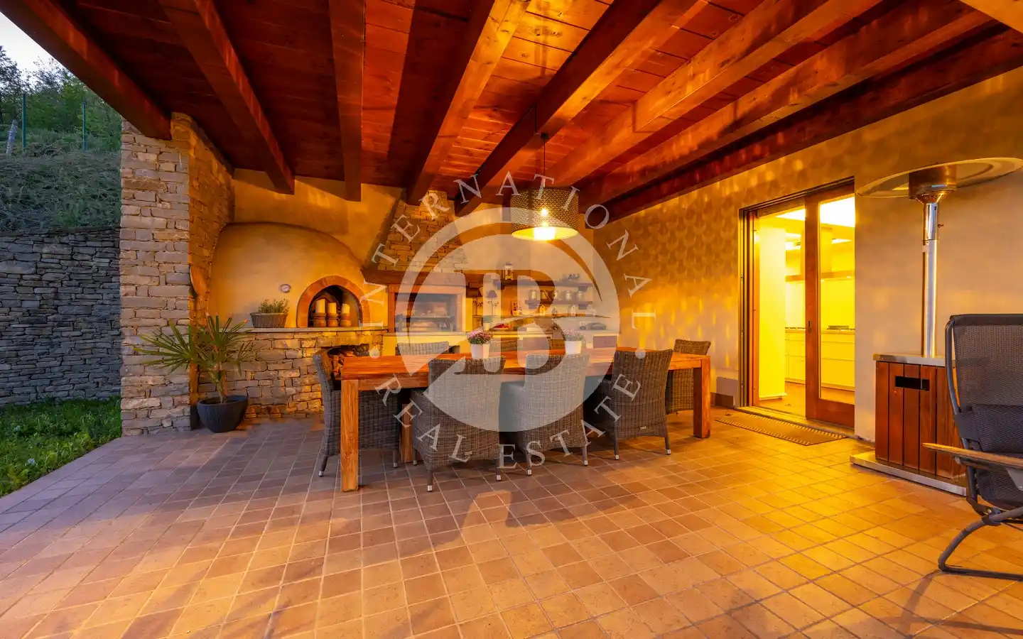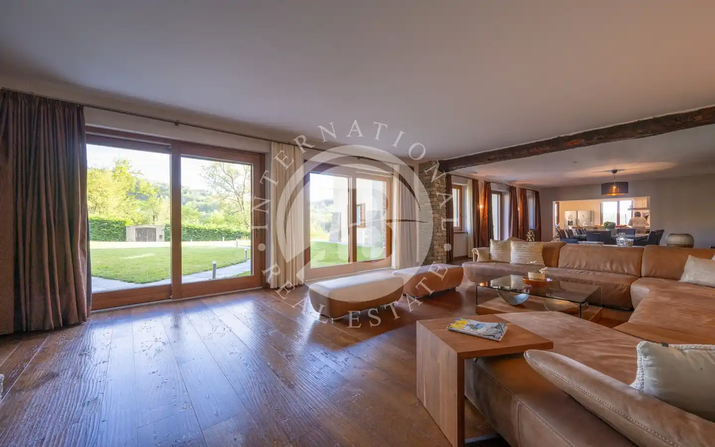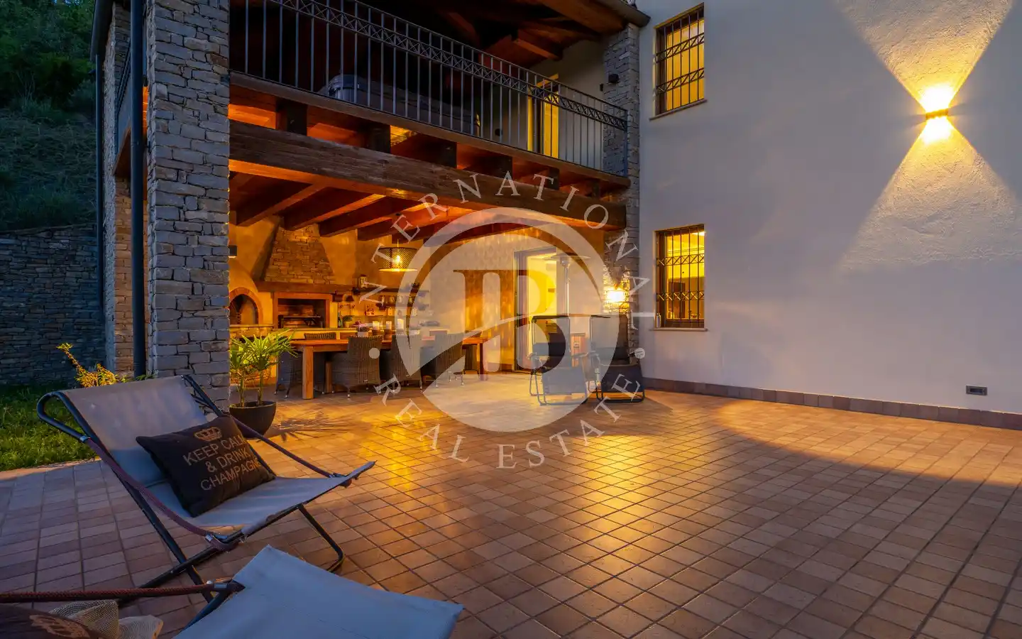 La residenza, di circa 1.000 mq distribuiti su quattro livelli collegati da ascensore, si inserisce in un contesto riservato di oltre sei ettari, tra boschi e filari di Chardonnay e Pinot Nero. Gli ambienti interni, caratterizzati da materiali autentici come pietra locale, cotto e legno, sono stati pensati per offrire al tempo stesso calore ed esclusività. Accanto alle ampie zone giorno e al salone di rappresentanza trovano spazio una piscina coperta riscaldata, un’area wellness con hammam e palestra, una sala biliardo e una sala cinema, oltre a unità indipendenti per ospiti e una grande autorimessa.