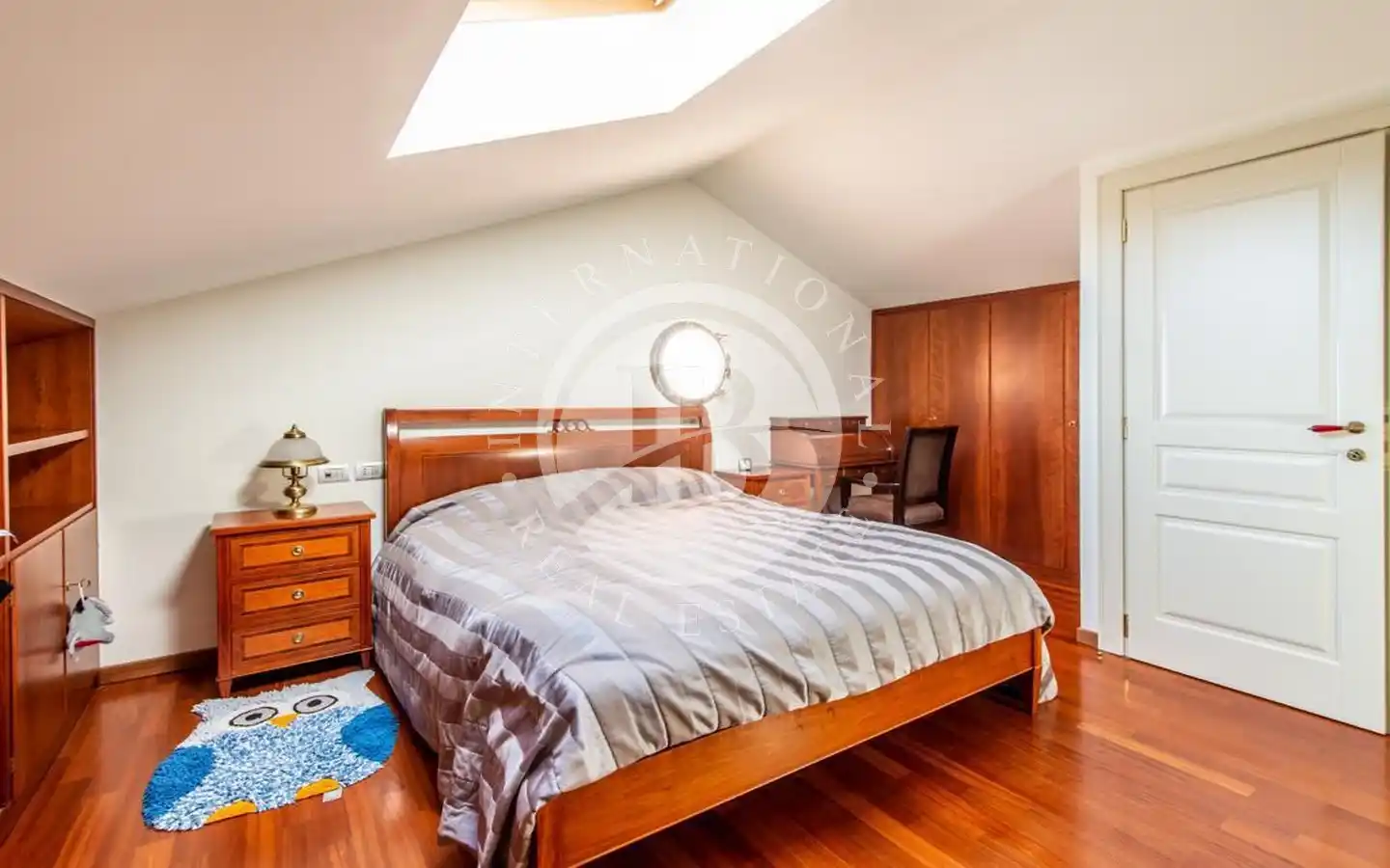 На верхнем этаже находится зона отдыха: мастер-сьют с собственной ванной комнатой и гардеробной, две дополнительные спальни с индивидуальными ванными комнатами и вторая кухня с кладовой. Мансардный этаж изысканно оформлен и предлагает ещё одну просторную спальню с личной ванной.
